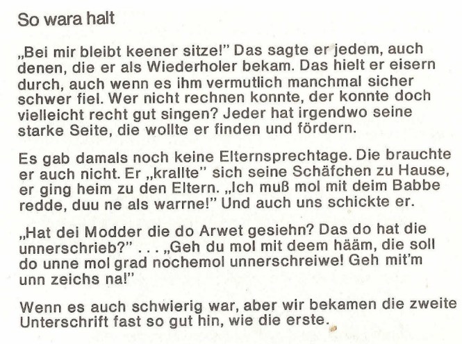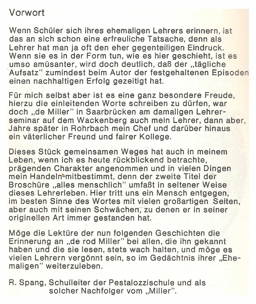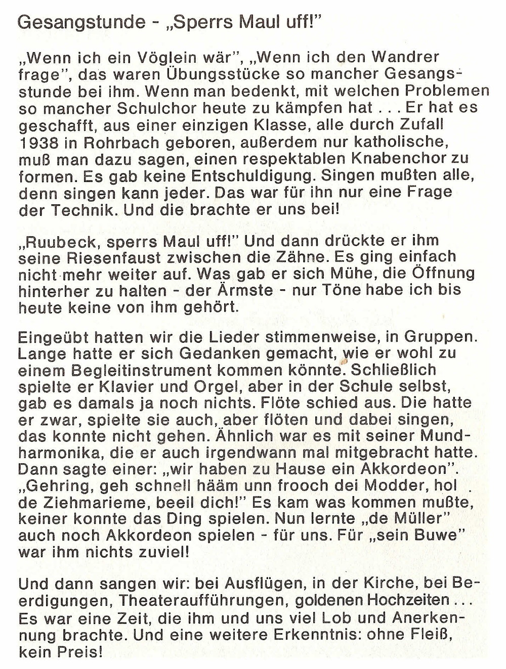 Schullehrer Friedrich Müller „de rot Miller “ gehört mit Sicherheit zu den Lehrern in Rohrbach, die in den Köpfen seiner ehemaligen Schüler und nicht nur dort unvergessen bleiben werden. Er war unbestritten eine große Persönlichkeit und wenn man so sagen darf, ein Original.