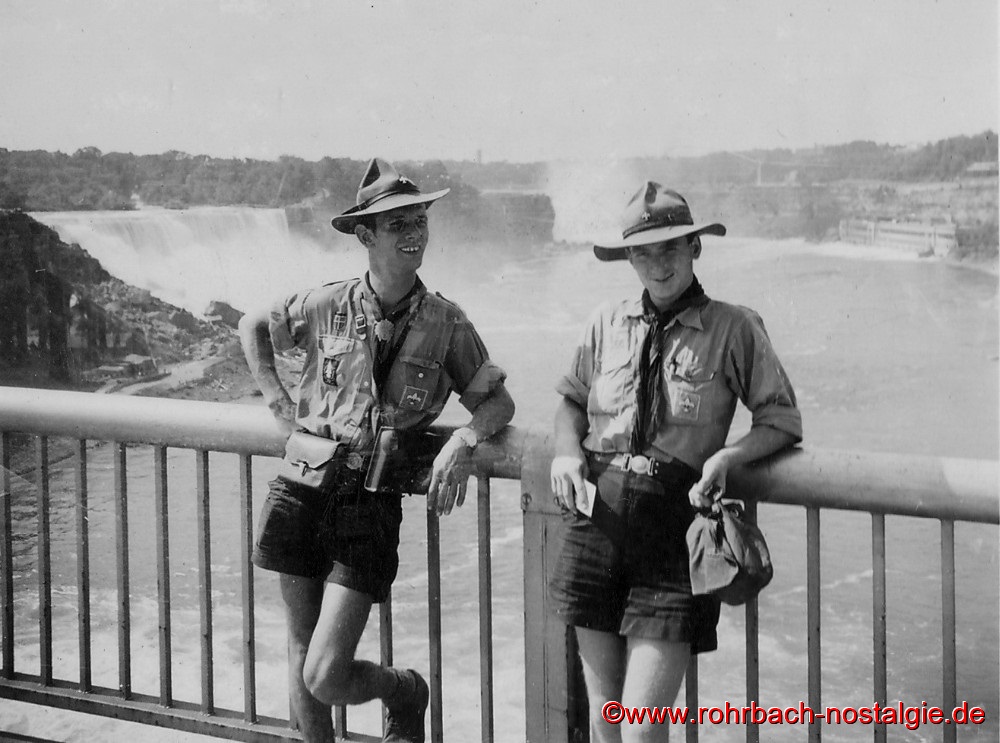 1955 – Zwei Rohrbacher Pfadfinder, Lothar Gehring (li) und Hans-Michael von Carlowitz auf dem 8. Welt-Jamboree an den Niagarafällen in den USA