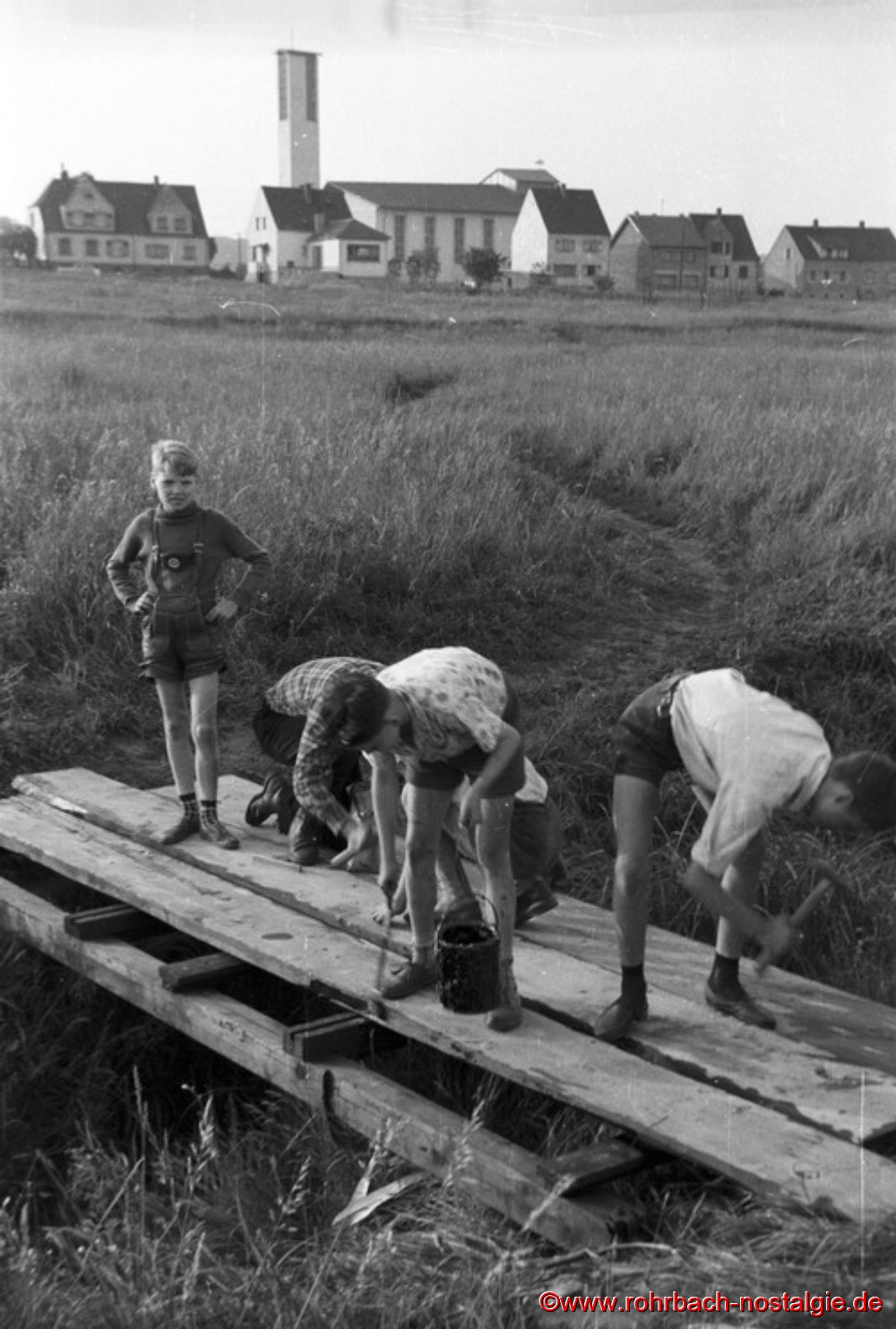 Um 1959 - Pfadfinder bauen in der Au einen Steg über den Rohrbach