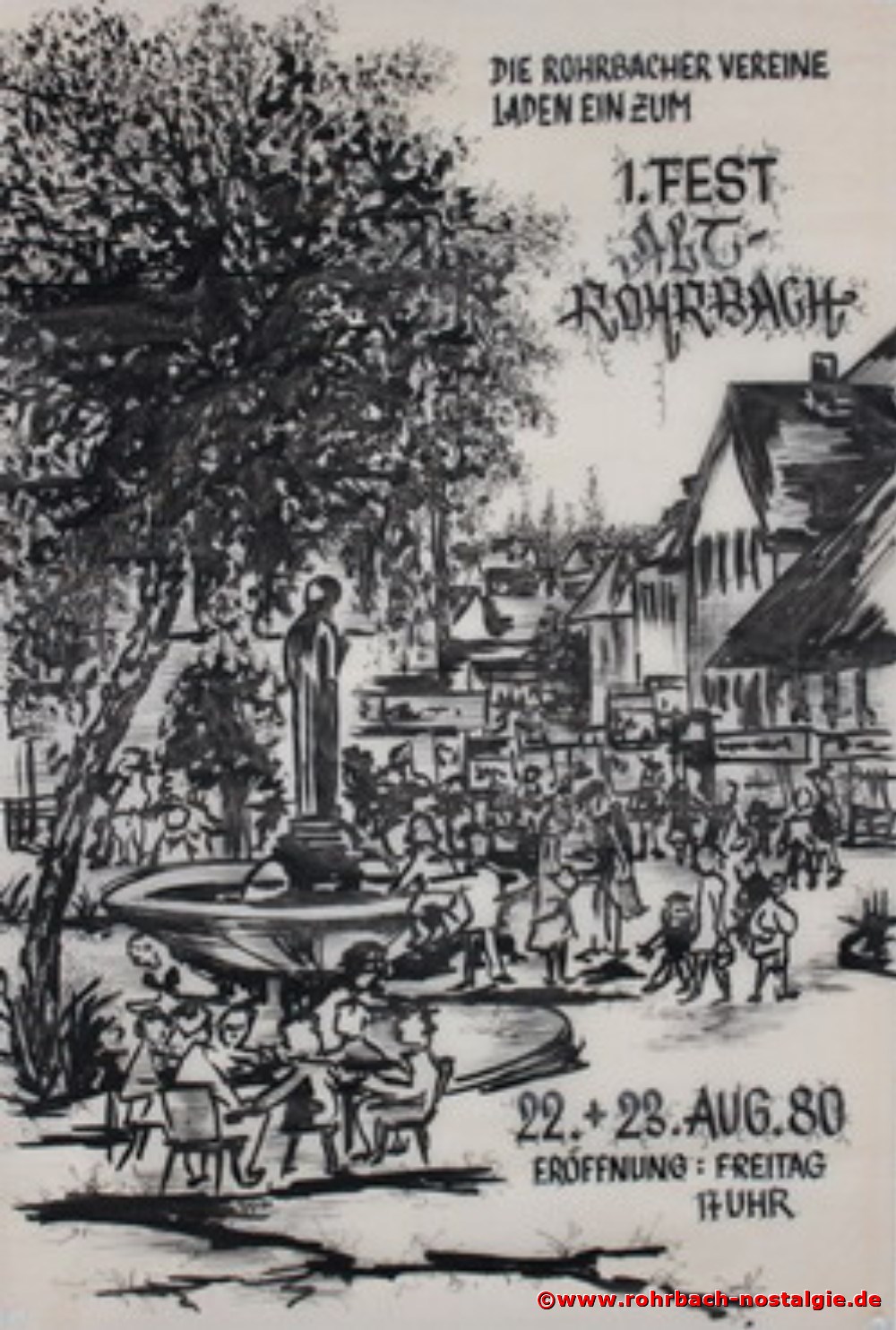 1979 machte der damalige CDU-Vorsitzende Gisbert Groh im Rohrbacher Ortsrat den Vorschlag ein Dorffest durchzuführen. Alle Rohrbacher Vereine sollten daran teilnehmen und ihren Verein vorstellen. Groß war die Resonanz der Rohrbacher Vereine bei einem ersten Treffen. Über 30 Vereinsvertreter nahmen am 9. Dezember 1979 im Schützenhaus teil. Einstimmig sprach man sich dafür aus, im Jahr 1980 ein Dorffest durchzuführen. Die Vorbereitung und Koordinierung wurde einem sechsköpfigen Festausschuss übertragen. Peter Rohe (Tischtennisclub), Norbert Dusemond (Musikverein), Ottmar Schmitt (Knappenverein), Hans-Joachim Stumpf (Karnevalsverein), Ewald Jung (Männerchor) sowie Gisbert Groh (CDU) als Ausschussvorsitzender übernahmen nun die Planungen. Als Termin wurde Freitag, 22.August und Samstag, 23. August 1980 festgelegt. Der Festbereich war von der Drehscheibe (Höhe Gasthaus Persil) bis zum Stegbruch, im Eck sowie teilweise „Hinter den Gärten“ vorgesehen.