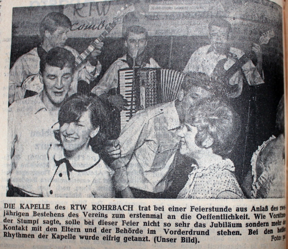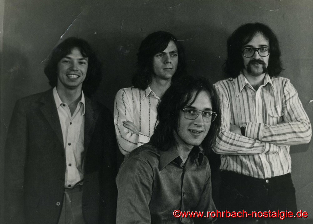 Auch an den Rohrbachern ging die Zeit der Musikbands, die sich insbesondere durch die E-Gitarre und den E-Bass und die Verstärker instrumentell von den Musikkapellen der 50ern und durch nur vier Musiker anstelle von vielen unterschieden, nicht vorbei. Hier war Einiges los. Leider konnte nach so vielen Jahren selbst bei den Beteiligten nicht mehr Alles dem Nebel der Vergangenheit entrissen werden. Deshalb bitte ich die Leser, inständig die Dinge, die Sie noch beitragen können, ob Fotos oder andere Beiträge zur Verfügung zu stellen.