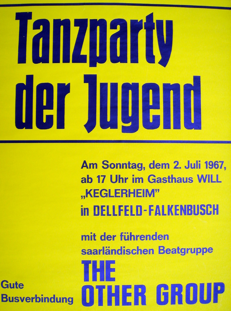 The Other Group gab es ab 1967. Mit den Plakaten dokumentierte Auftritte gab es in Rohrbach Zur Post und in der Turnhalle, in St. Ingbert im Martin-Luther-Haus, in Elversberg im Gasthaus zur Fichte und in Dellfeld-Falkenbusch im Keglerheim Gasthaus Will. Außerdem gab es Auftritte quer durchs Saarland und in Dudweiler – Herrensohr.