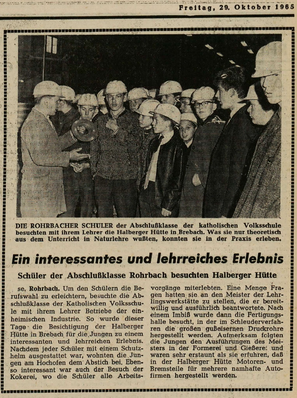 Als ich den Artikel sah, wo wir in Helmen dastehen und den Ausführungen des Meisters der Hallberger Hütter zuhören, fiel mir ein, was damals ein Abgänger zu mir sagte, bevor ich in die 9. Klasse kam. „Da werdet ihr ne ruhige Kugel schieben“, dem war allerdings nicht so.