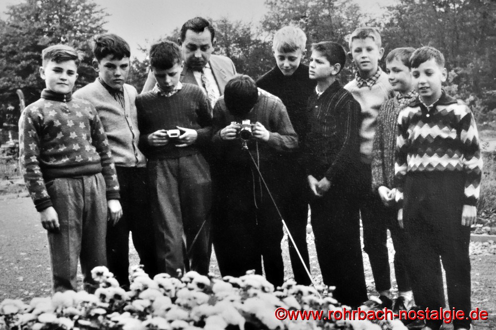 1962 Fotokurs mit Lehrer Albert Senzig. Auf dem Foto von links: Herbert Jakobs, Berthold Wadle, Otto Quien, Lehrer Albert Senzig, Donat Madert, Michael Wagner, Rudi Hussong, Franz-Josef Liebl, Wolfgang Kraus und Peter Rohe