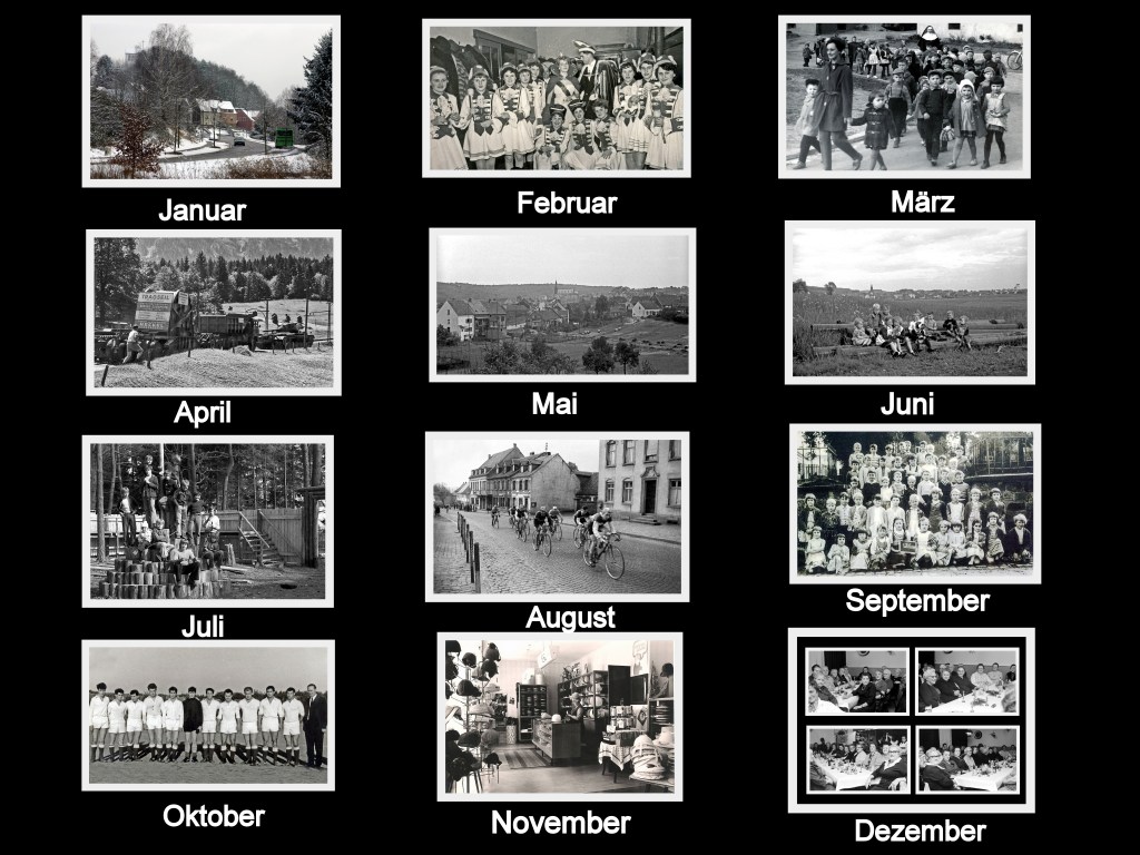 Vom „Kalenderteam“ der Heimatfreunde wurde mit viel Zeit und Engagement ein Kalender zusammengestellt, der einen Ausschnitt des dörflichen Lebens in den letzten 70 Jahren widerspiegelt.