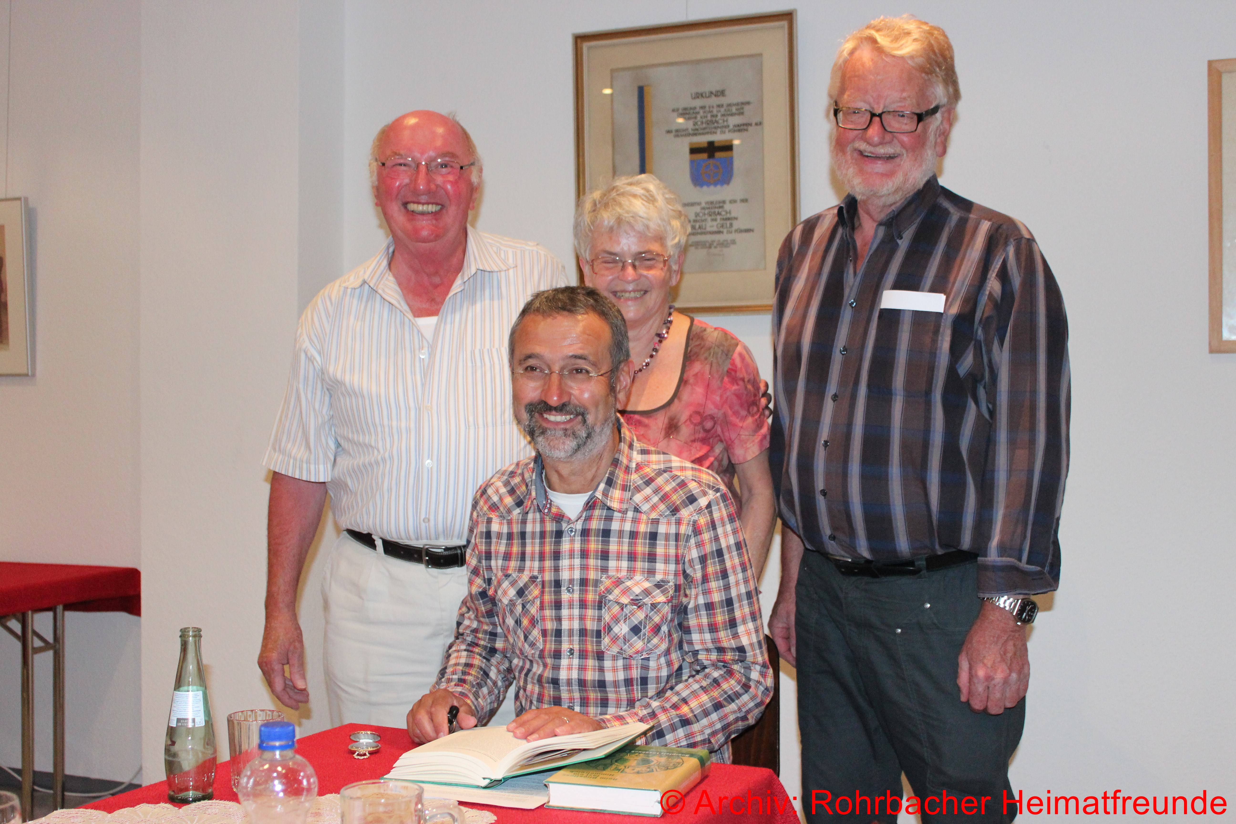 2014 Der Rohrbacher Schriftsteller Martin Bettinger bei der Vorstellung seines Buches „Einen Galgen für meinen Vater“ im Gespräch mit dem 1. Vorsitzenden der Heimatfreunde Kurt Wachall und Werner Schmitt