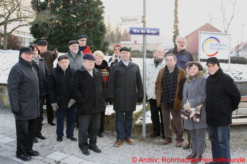 2012 Das neue Straßenschild „En de Seye“, Rohrbacher Name für die Detzelstraße wird eingeweiht