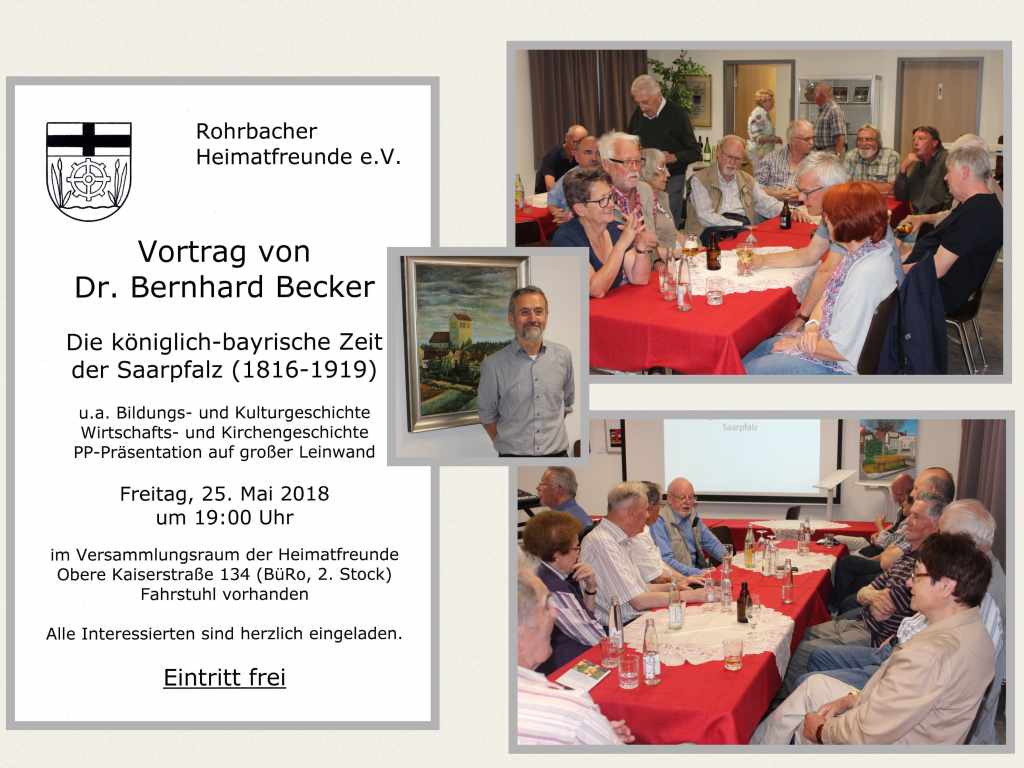 2018 Vortrag von Dr. Bernhard Becker über die königlich – bayrische Zeit der Saarpfalz (1816-1919)