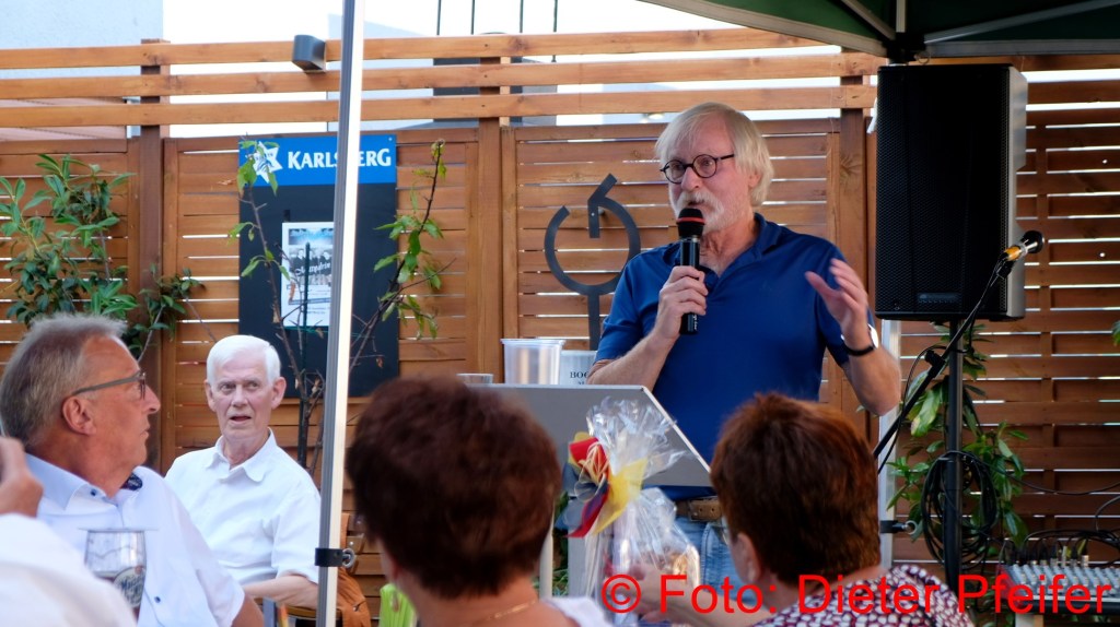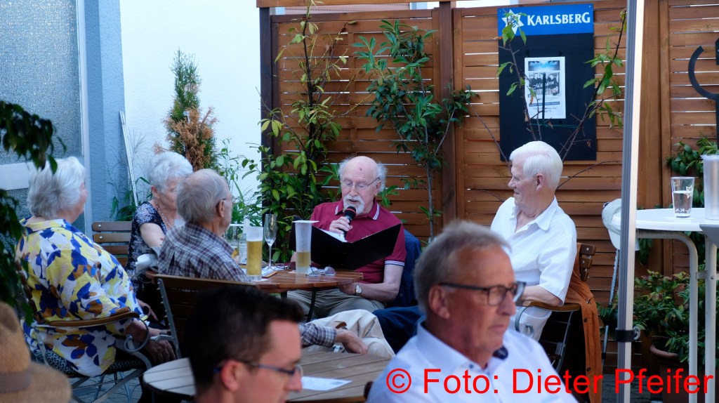 2018 Günter Weiland, als ehemaliges Mitglied der Bierkehlchen, gab einen kurzen Überblick über die Geschichte der Gruppe und ließ es sich trotz fiebriger Erkältung nicht nehmen ein paar Gassenhauer vorzutragen. so u.a das berühmte Stampeslied.