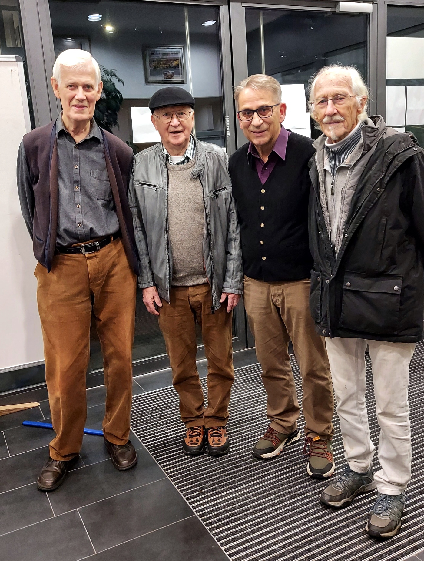 Zum Abschluss der Veranstaltung noch ein Erinnerungsfoto. Auf dem Foto von links: Bärbel Pfeifer (Tochter von Julius Pfeifer), die beiden, lebenden Mitglieder der Bierkehlchen die anwesend waren, Günter Herrmann und Günter Weiland sowie Dieter Pfeifer (Sohn von Julius Pfeifer), der großen Anteil am Gelingen der Veranstaltung hatte. Es fehlt als drittes, noch lebendes Mitglied der Bierkehlchen Albert Knoch.