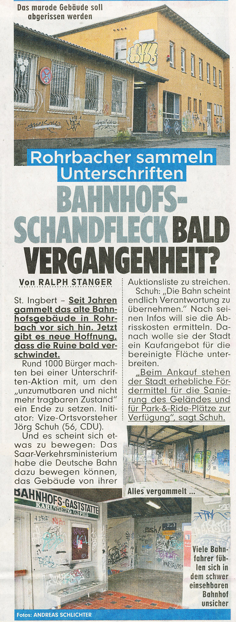 Die Deutsche Bahn ließ mit den Jahren den Rohrbacher Bahnhof immer mehr verkommen, sodass der Rohrbacher Ortsrat den Antrag stellte, den Bahnhof abzureißen. Er bot ein trostloses Bild.