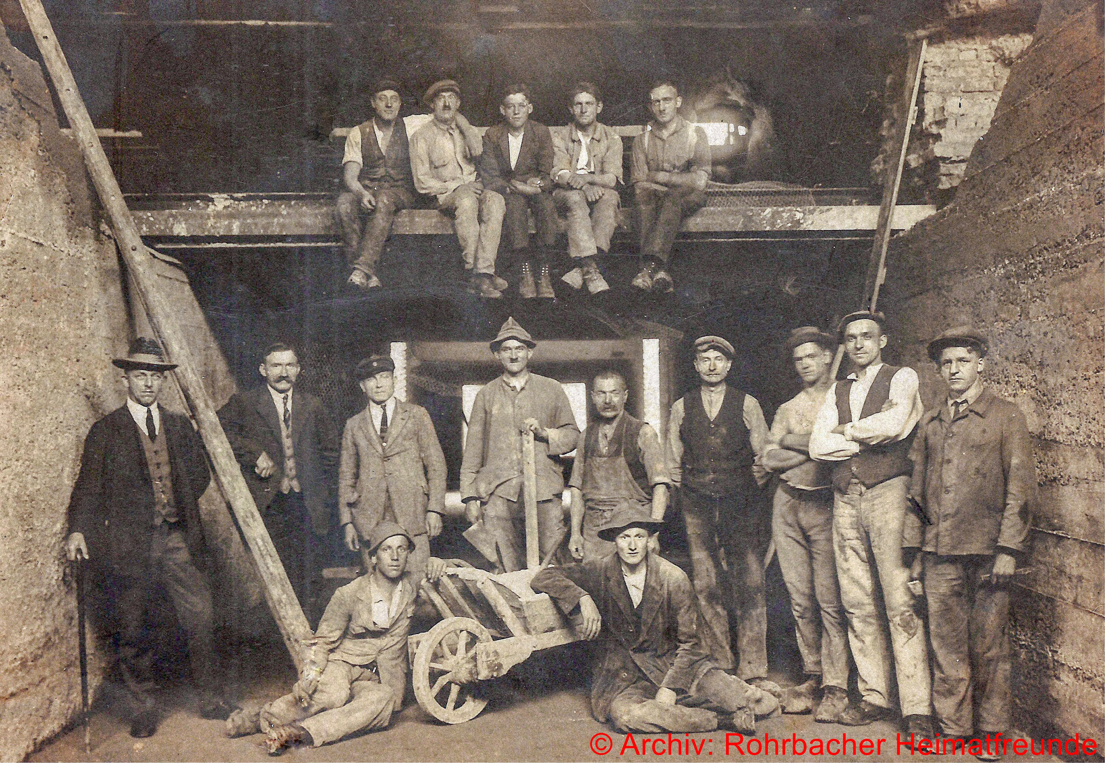 Arbeiter beim Bau der Unterführung am Rohrbacher Bahnhof