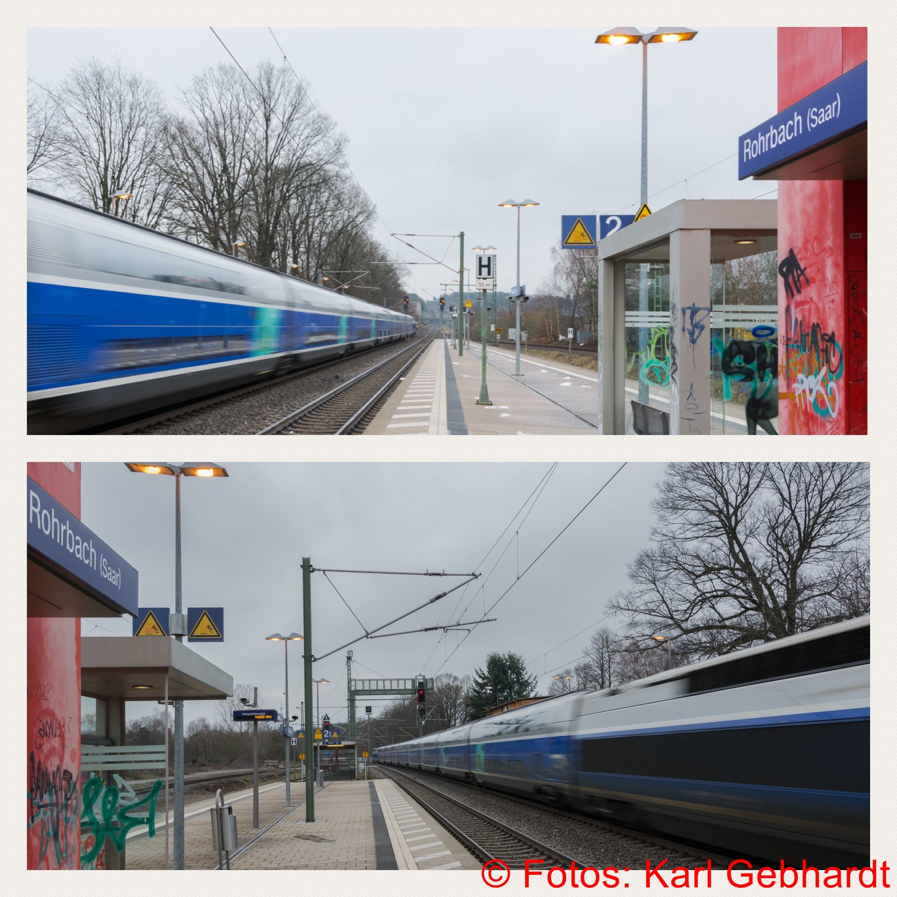 Schnelle Züge brausen am Rohrbacher Bahnhof vorbei