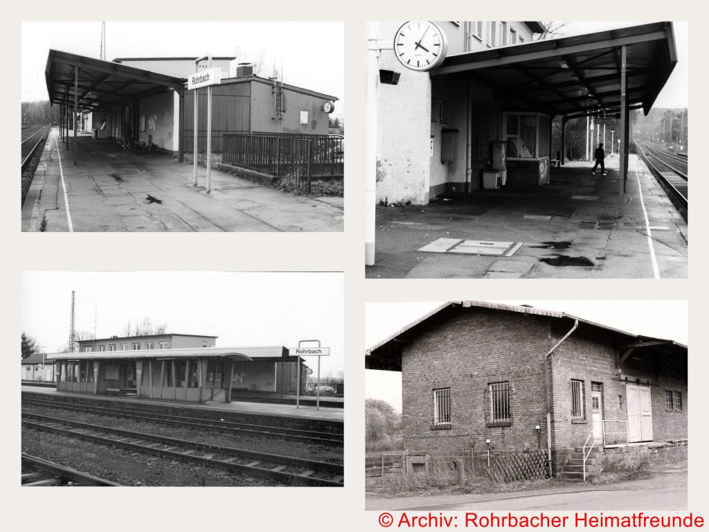 Ende des zweiten Weltkrieges im März 1945 wurde der Rohrbacher Bahnhof und das Bahngelände von den alliierten Kampfbombern durch Bomben und Granateinschlägen schwer beschädigt. Das Personal musste lange Zeit in behelfsmäßigen Räumen untergebracht werden. Erst 1949 gab es durch den Bau einer Baracke einen Warteraum und eine Bahnhofsgaststätte.