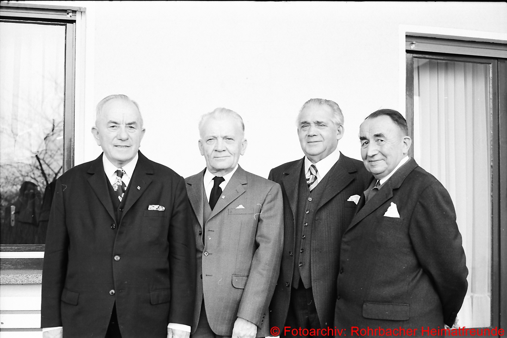 Vier Gründungsmitglieder der Kolpingfamilie, die auch auch schon bei der Gründung des Gesellenvereins 1924 dabei waren. Von links nach rechts: Christian Pfeifer („de Peifer Krischan“), Albert Michely („de Aumacher Albert“), Clemens Roschlock und Nikolaus Becker („de Becker Niggel“).