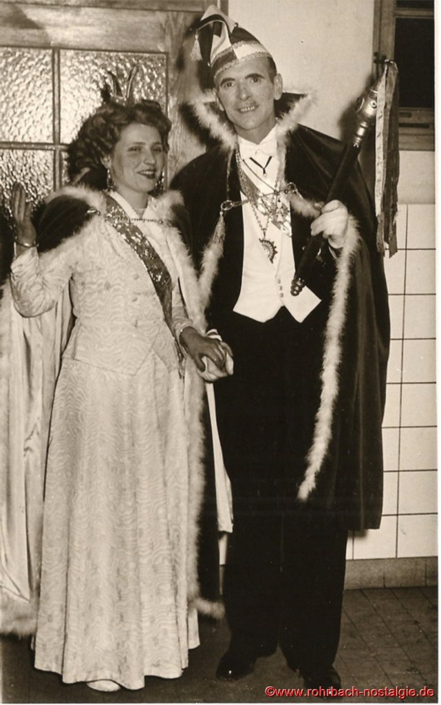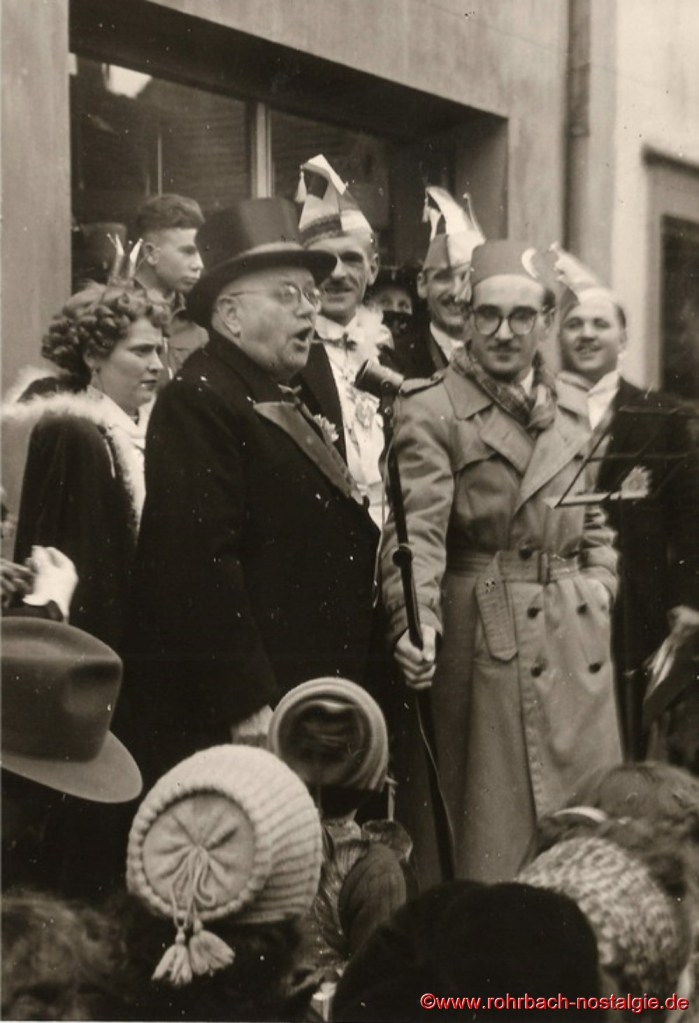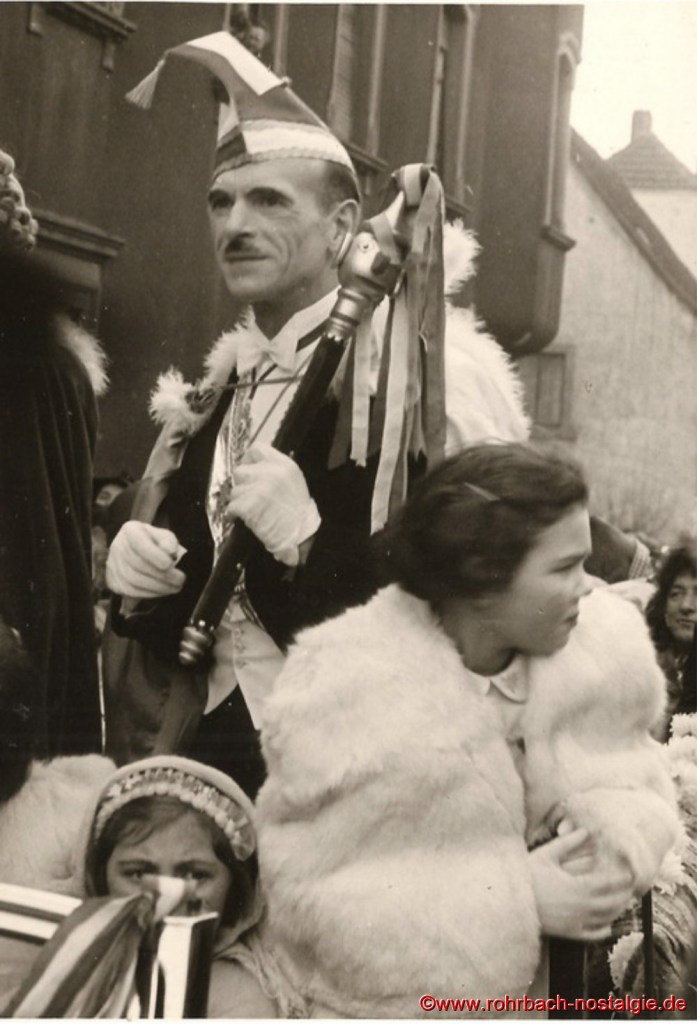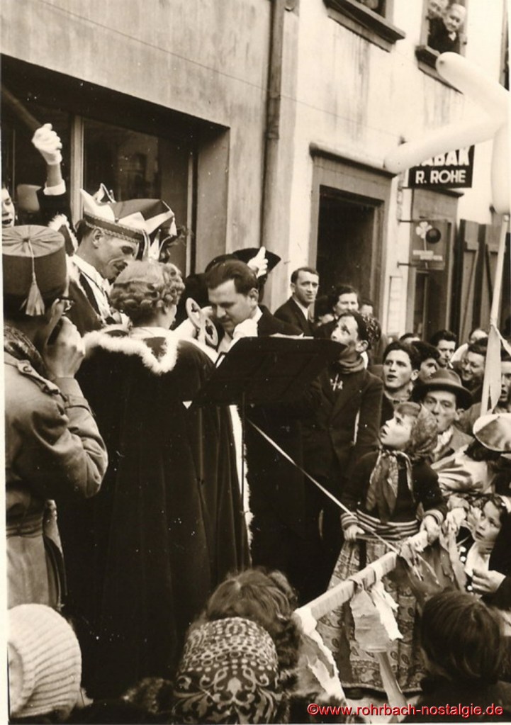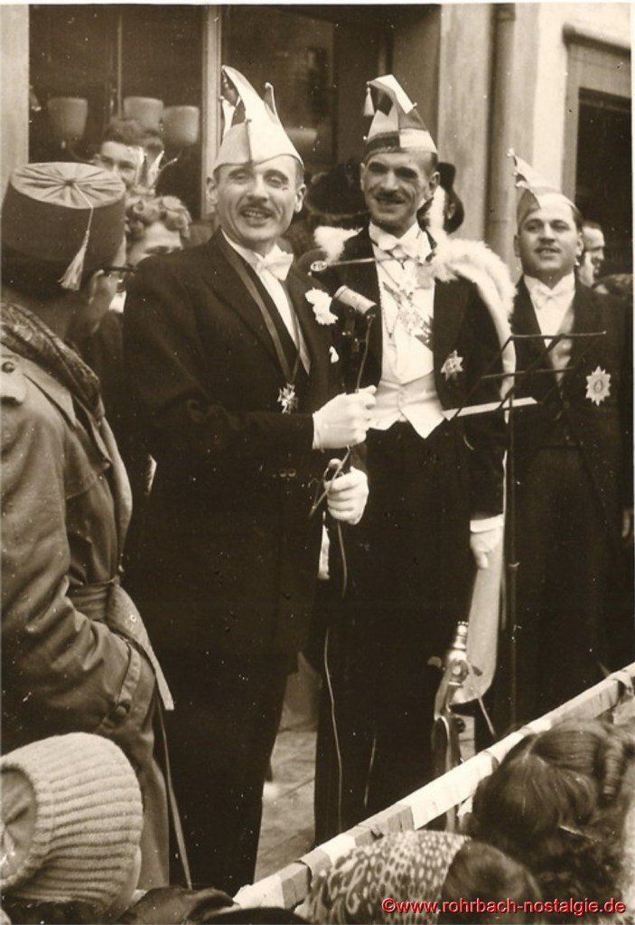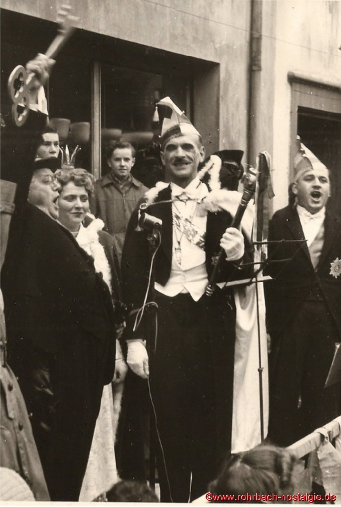 Ab 1949 wurden die Bestimmungen etwas gelockert. Wer „verboozt“ auftreten wollte, musste bei der Ortspolizeibehörde eine Maskenkarte beantragen. Verkleidet traf man sich an der Drehscheibe, um von dort von Wirtschaft zu Wirtschaft zu ziehen. 1954 organisierte dann die Interessengemeinschaft „Rat und Tat“ (Rohrbacher Geschäftsleute) erstmals einen großen Umzug. Er fand am Fastnachsdienstag, den 2. März statt. Auch hatte die närrische Gemeinde erstmals ein Prinzenpaar. Rita Wadle als Rita I. von Wadwolfshausen und Artur Banholzer als Artur I. von Finkendahlheim. Als Präsident des närrischen Staates Rohrbach fungierte Heinz Gehring (de Klowe).