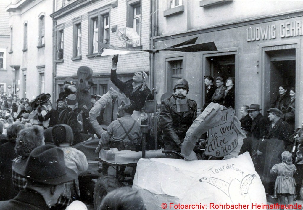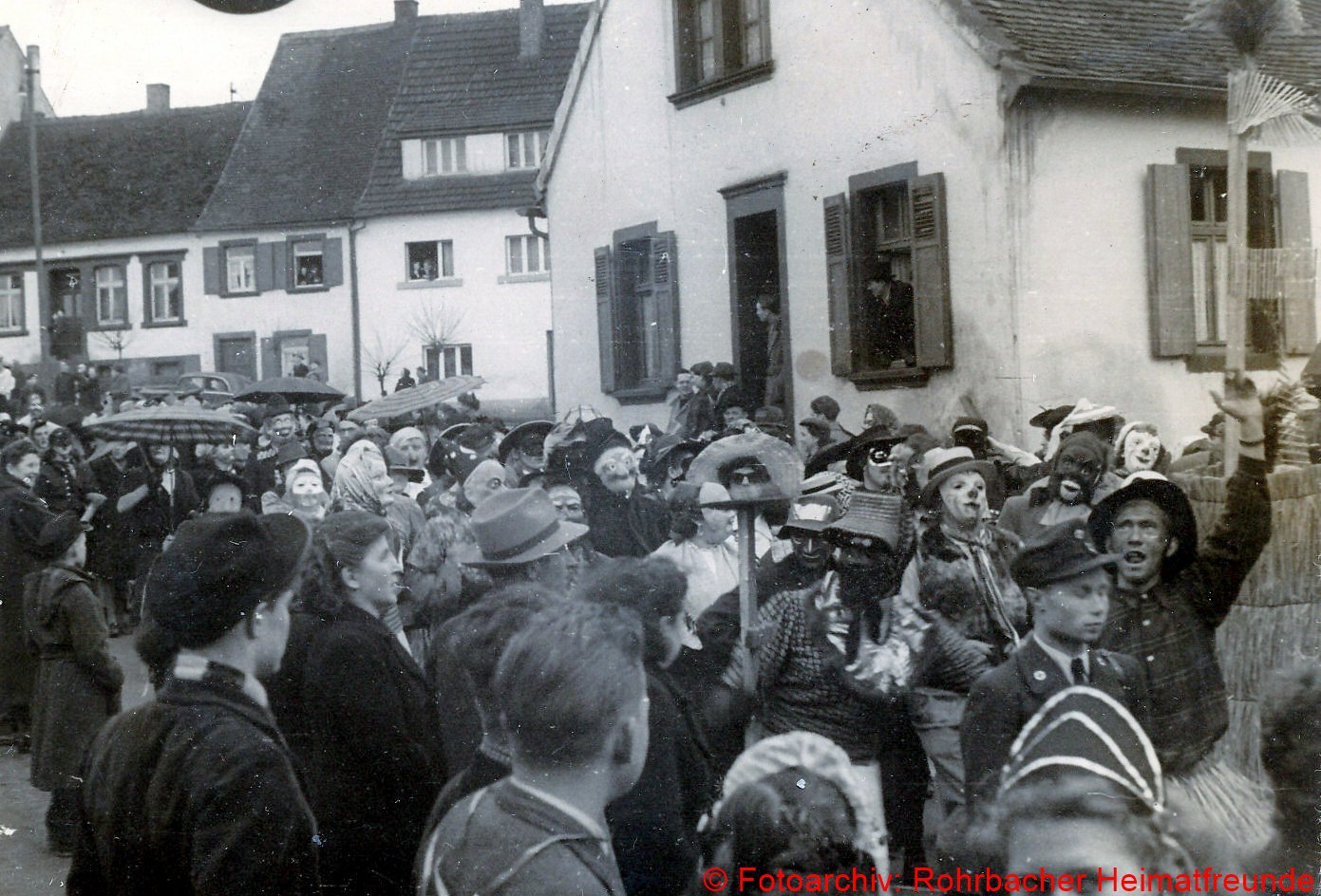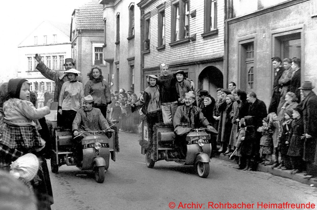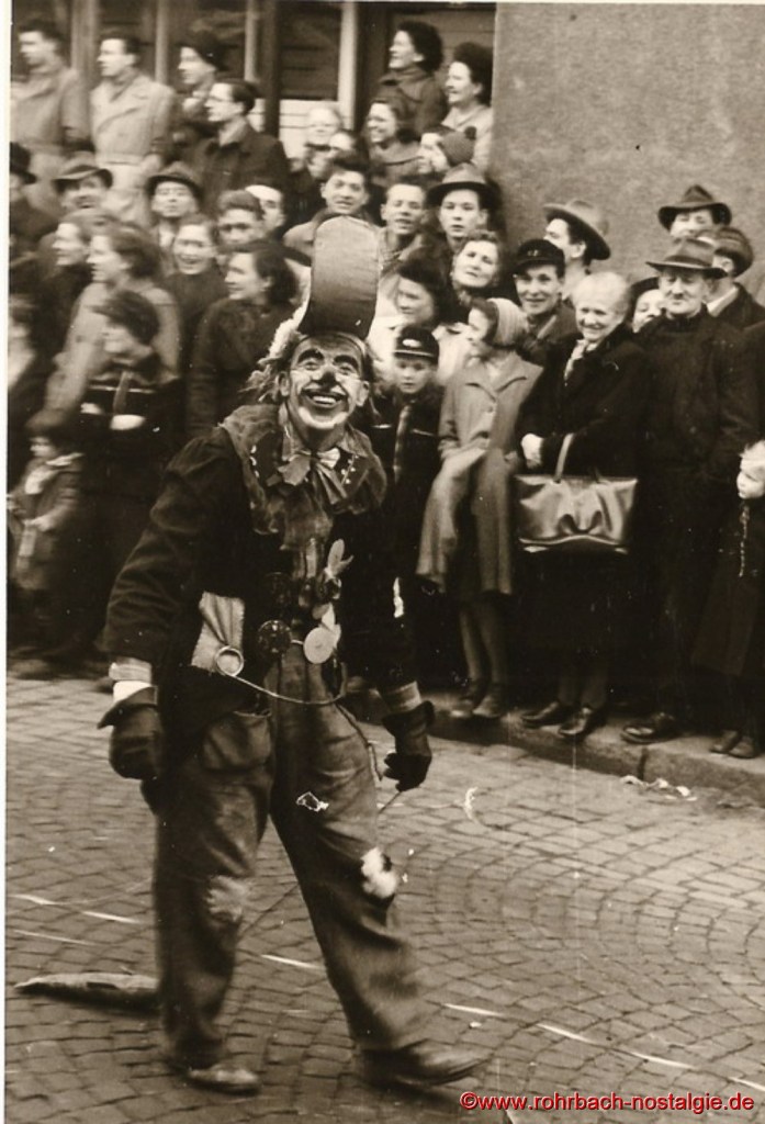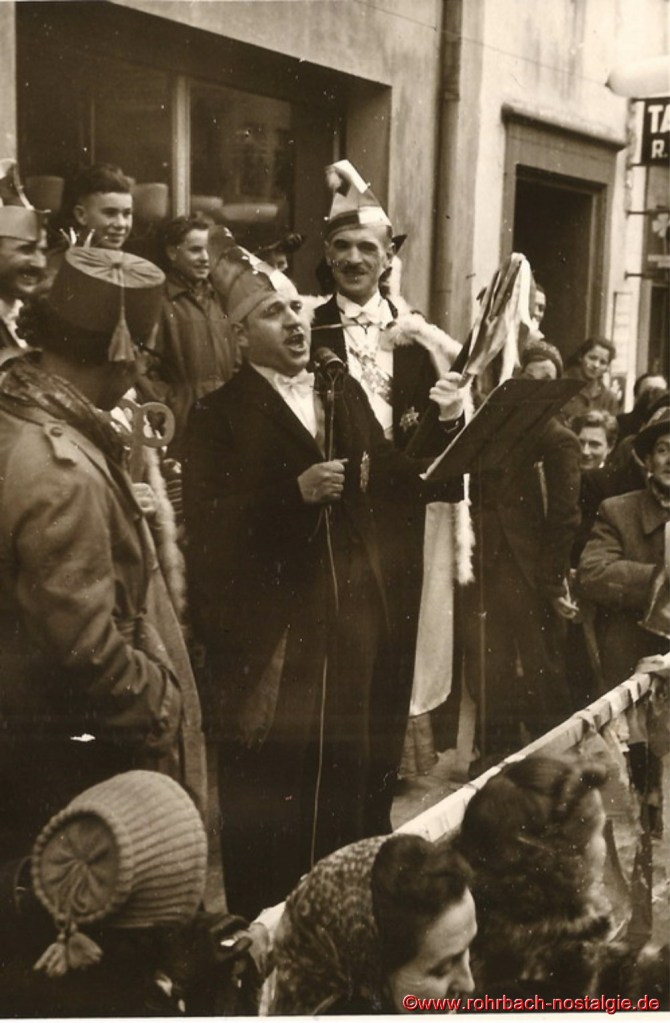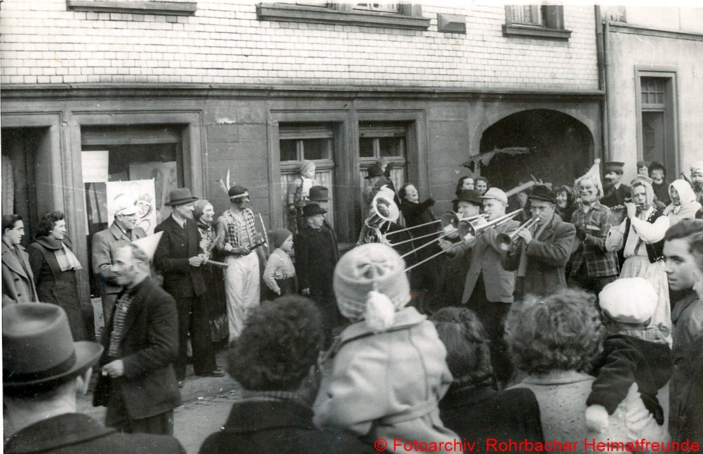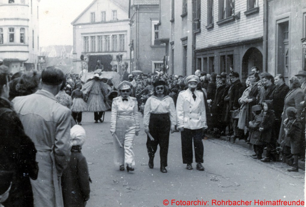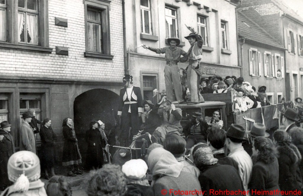 Der Fastnachtsdienstag war in Rohrbach in den Nachkriegsjahren traditionell der Tag der Straßenfastnacht. Allerdings war das Feiern bis einschließlich 1948 noch Beschränkungen unterworfen. Man durfte bis dahin keine Gesichtsmasken tragen, sodass mehr Sorgfalt aufs Schminken gelegt wurde.