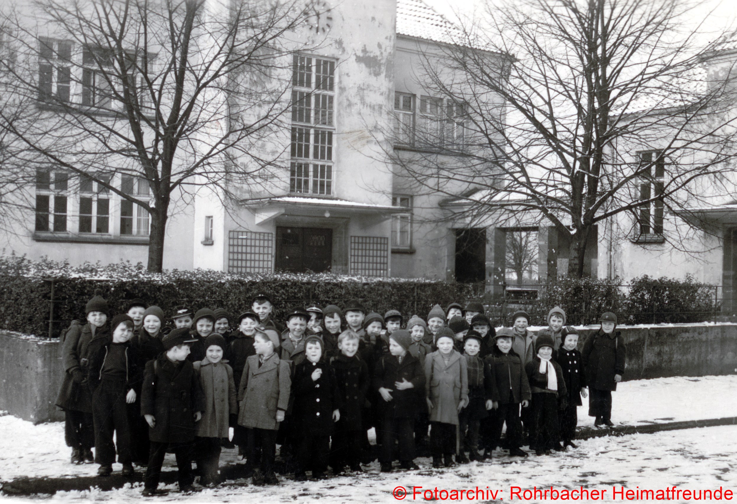 Im Winter 1955: Die Buben des Jahrganges 1948 vor der Pestalozzischule